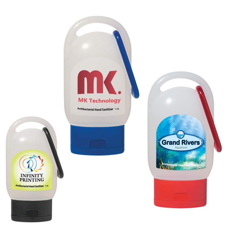 1" Carabiner. Effective At Eliminating Over 99.9% Of Germs And Bacteria. Meets FDA Requirements. Lightly Scented. Carabiner Clips Onto Briefcase, Backpack, Etc. 62% Ethyl Alcohol Content. Price includes full color imprint.