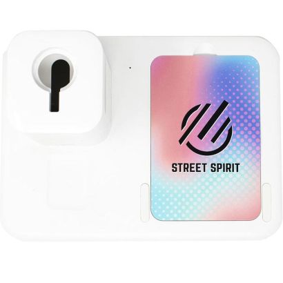 Charge Qi Enabled Devices Wirelessly By Placing Compatible Device On Top Of Charging Pad. Features A Type-C Input (Cord Included). Holds A Variety Of Phones For Easy Viewing. Output: 10W. Please Note That Some Computer And Laptop USB Ports May Not Supply Enough Power To Charge A Device Using This Charging Pad. Price includes one color, one location imprint.