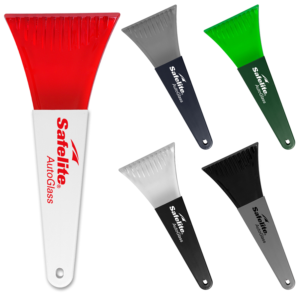 11 1/2" two-piece ice scraper with heavy-duty 1/4" thick scraping blade and patented ribbed grip handle. Made in USA. Price includes 1 color imprint.
