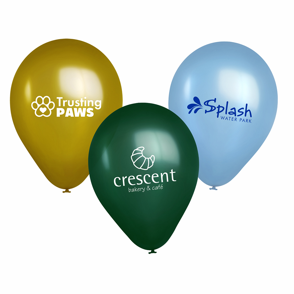 Helium quality, 100% biodegradable natural latex balloons, superior Zenith silkscreen printing. Balloons are a cost effective & highly visible way to get noticed! Perfect decoration or attention grabber for any event. Float times are based on properly inflated balloons, actual time varies depending on temperature & atmospheric conditions. Balloon accessories can shorten float time. 14-18 Hr. float time. Price includes one color, one location imprint.
