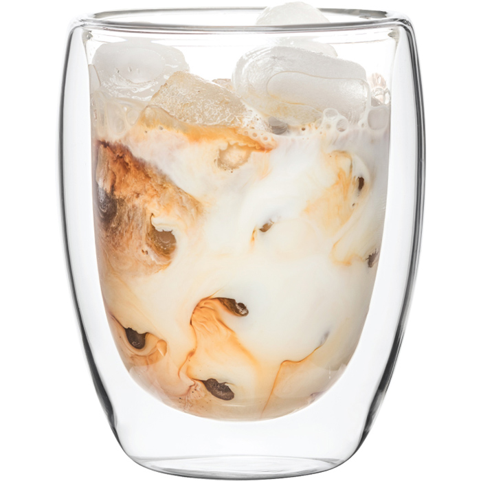 A beautiful way to enjoy your latte, coffee, or iced beverage in this glass cup mug. Manufactured from heat resistant double walled borosilicate glass which will ensure your hot drinks stay hot and your iced beverages don't sweat onto your table. Hand wash only. Must order full case quantities. Glass handling fee - $8.00 per case. Product Material(s): Borosilicate Glass. Price includes one color, one location imprint.