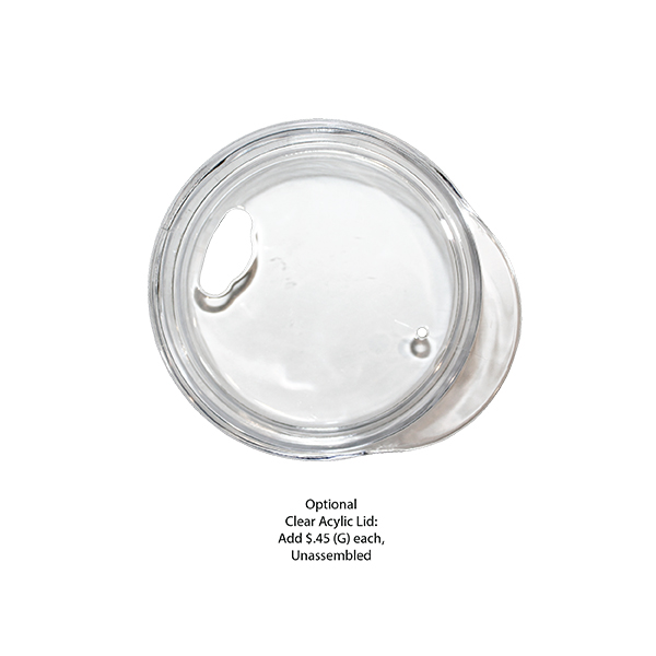 Soft-Touch Feel. Double Wall Stainless Steel. Push-on, Clear Acrylic, Sip Through Lid - Optional. 18/8 Food-Grade Stainless Steel. Hand Wash Only. Gift Box Available for an Additional Charge. Price includes one color, one location imprint.