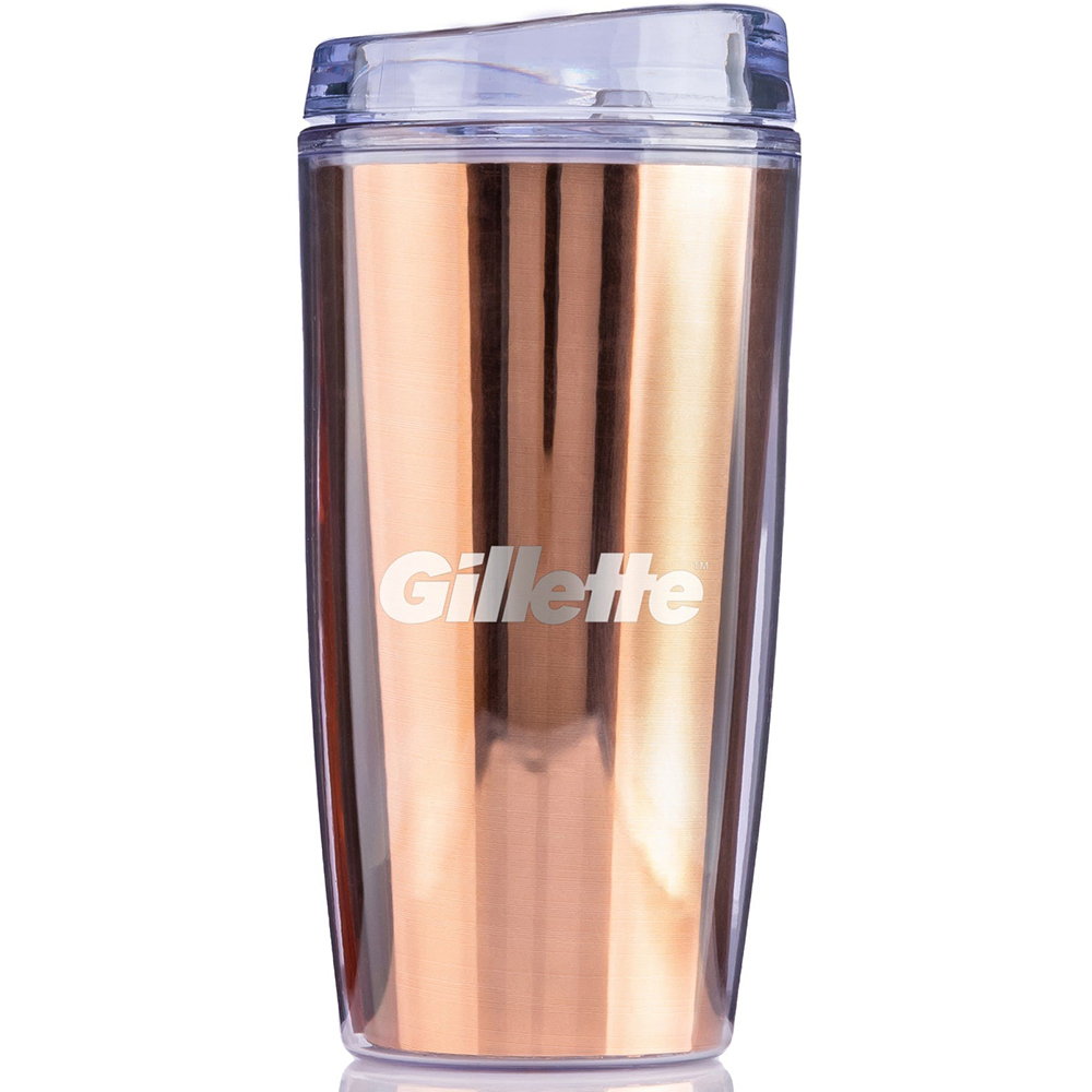 14 oz double wall tumbler. Includes Metallic Insert. Pop off lid. Top rack dishwasher safe and microwave safe. Price includes one color, one location imprint.