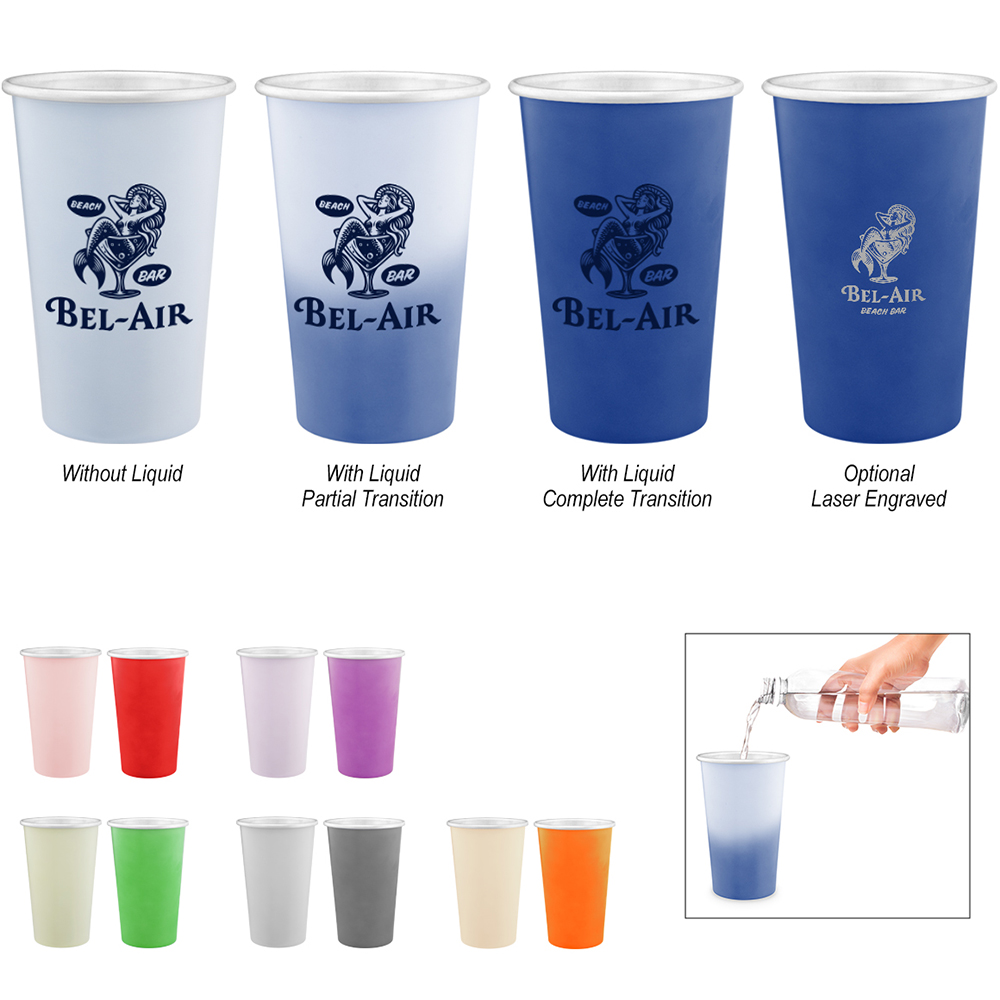 Made Of Recycled Aluminum. Cup Changes Color When Ice-Cold Beverages Are Added. Meets FDA Requirements. BPA Free. Hand Wash Recommended. Price includes one color, one location imprint.