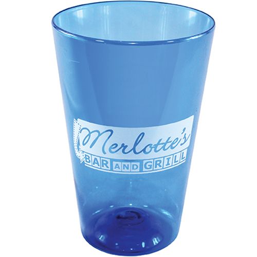 Crystal Clear PET Shatterproof plastic. Reusable. Hand wash only. Price includes one color, one location imprint.