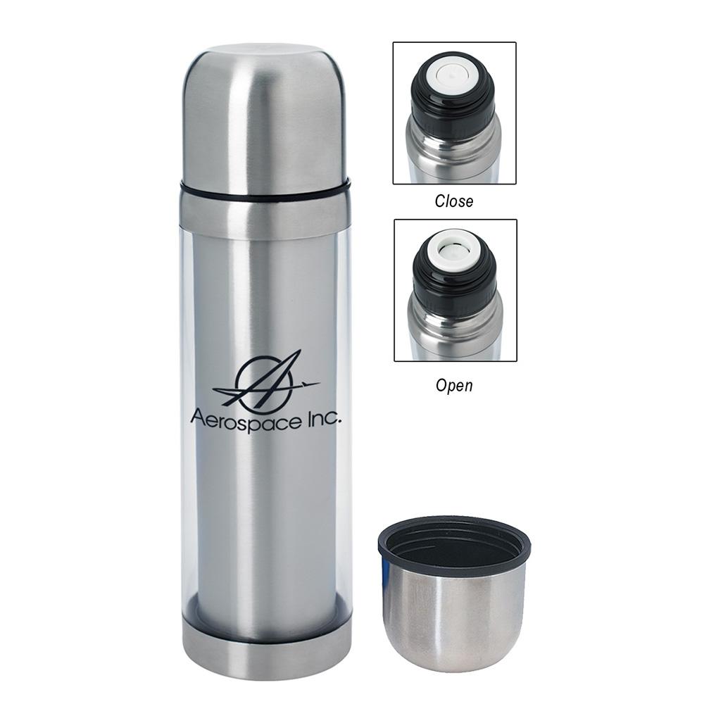 Screw On, Spill-Resistant Lid. Pop Up Lid For Pouring. Individual Gift Box. Meets FDA Requirements. Price includes one color imprint, one location.