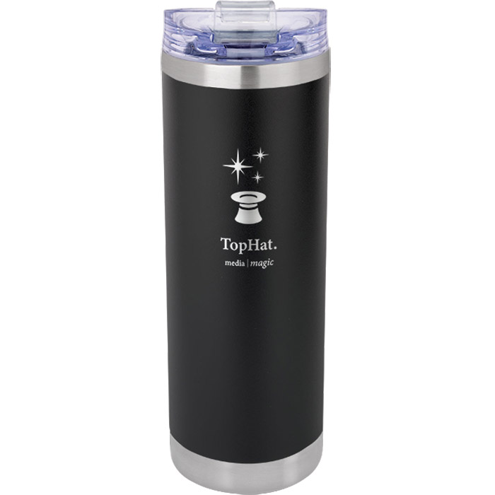 Copper lined, vacuum-insulated deep draw liner maintains optimal 10X drinking temperatures. Dual walled Stainless Steel construction. Lead-free in all accessible components. Features a screw on, spill-proof AS plastic flip top design with Tritan snap locking closure lid. Durable powder-coated finish with Stainless Steel top and bottom rims. Sweat-free design. 1-year limited warranty. Patent pending. Price includes laser engraving. Price includes full color imprint.
