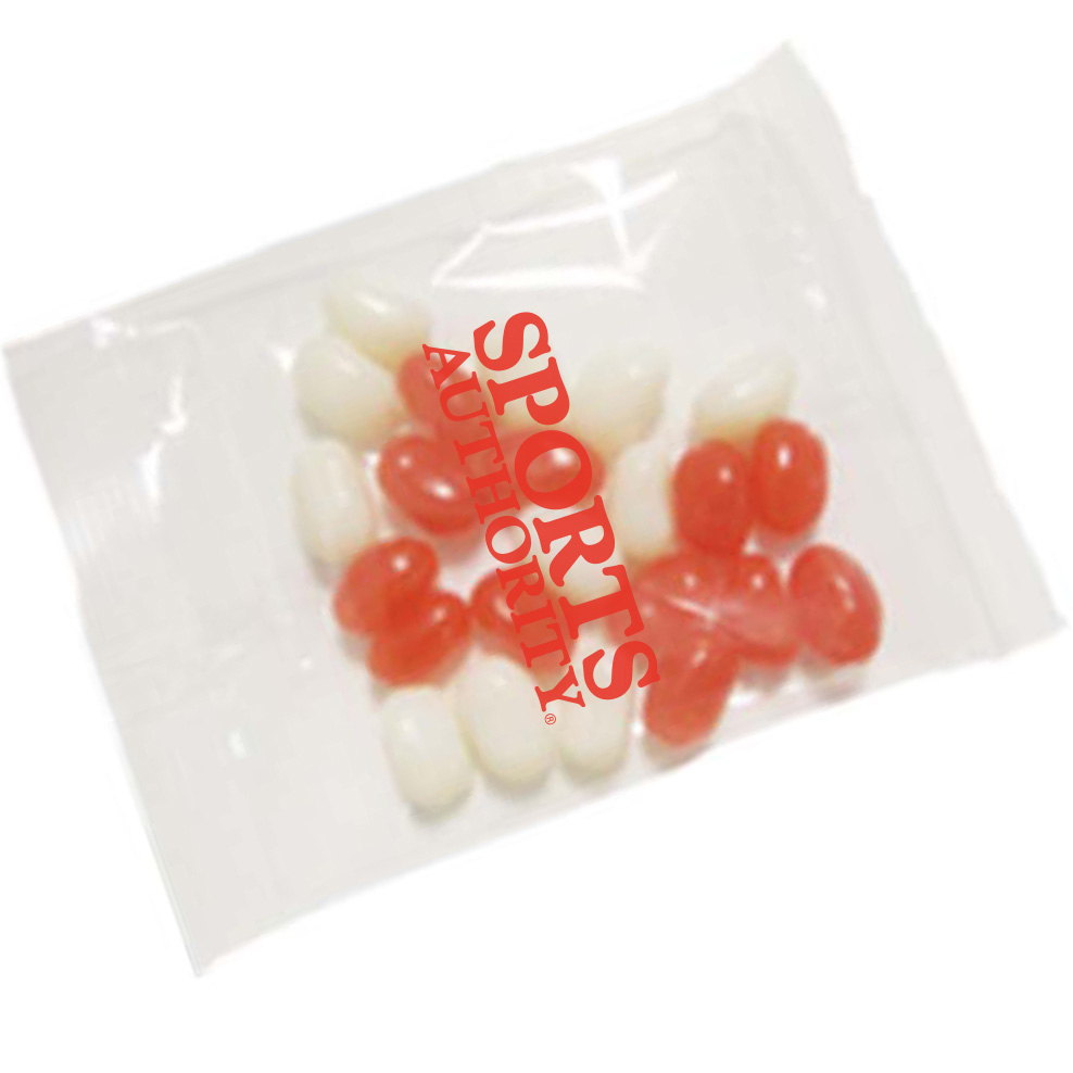 1oz.Gourmet Jelly Beans Goody Bag. Perfect for parades, trade shows or any event where you want to give an inexpensive, colorful and delicious treat. Select from a 1-4 spot color direct imprint or a 1-4 color process label for the same price! Direct imprint bag dimensions: 4.929" x 2.5". Labeled bag dimensions: 3" x 4". Non melt product.