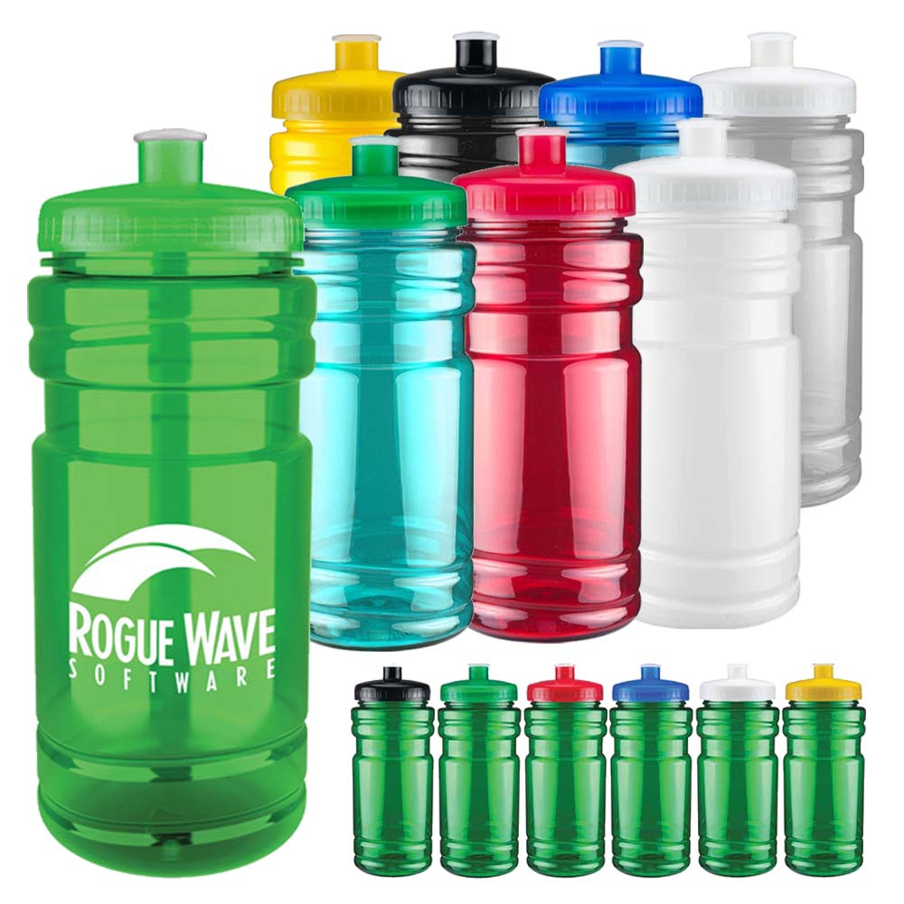 20 oz sport water bottle. BPA free. A great wellness gift for giving away at sporting events like marathons, fun runs, cycling events, basketball games and much more.