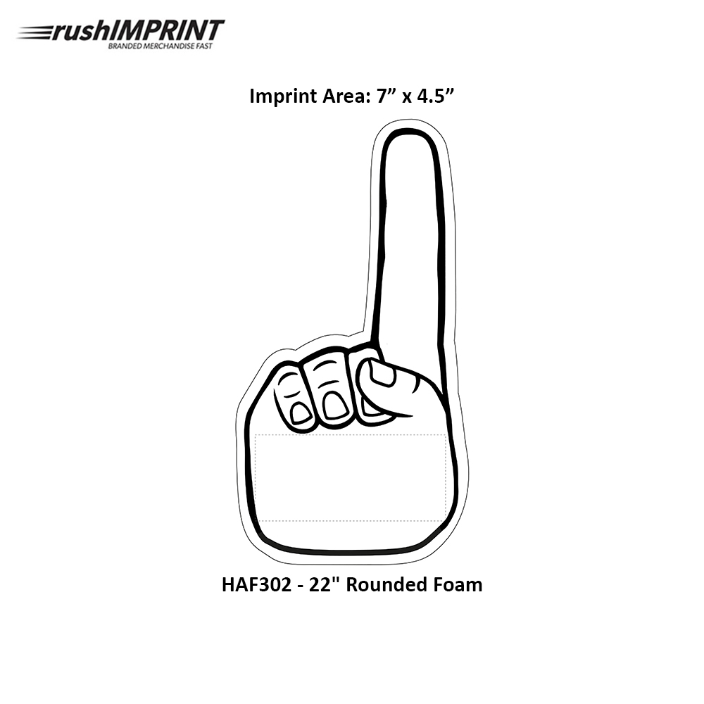 Catalog Year 2025. 22" Foam. FOB: Maine 04619. Price includes one color imprint on finger and palm. 2nd side print with additional charges. See Product Options. The original choice in a foam waver, the "#1" foam hand and finger remains the best-selling stadium promotional product to this day! Measuring 22" high, this handy foam cheering novelty has a slit for hand use and is imprinted with silk screen or optional digital transfer, and available in various colors. Also perfect for arenas and convention halls! Price includes one color, one location imprint.