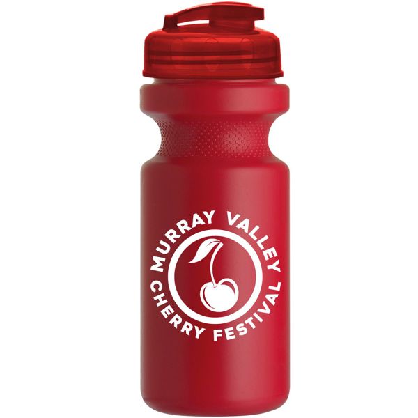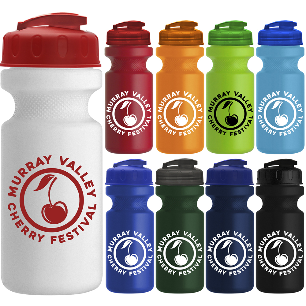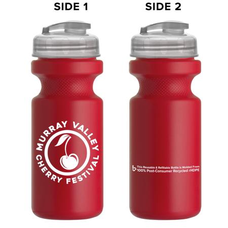 22 oz Bike Sports Bottle With USA Flip Lid. 50% Post-consumer Recycled HDPE. Ships Assembled - No Extra Charge. HDPE is BPA free - Recycling Code #2. FDA compliant - Safe for food contact. Top Rack Dishwasher Safe - Do Not Microwave. Price includes one color, one location imprint.