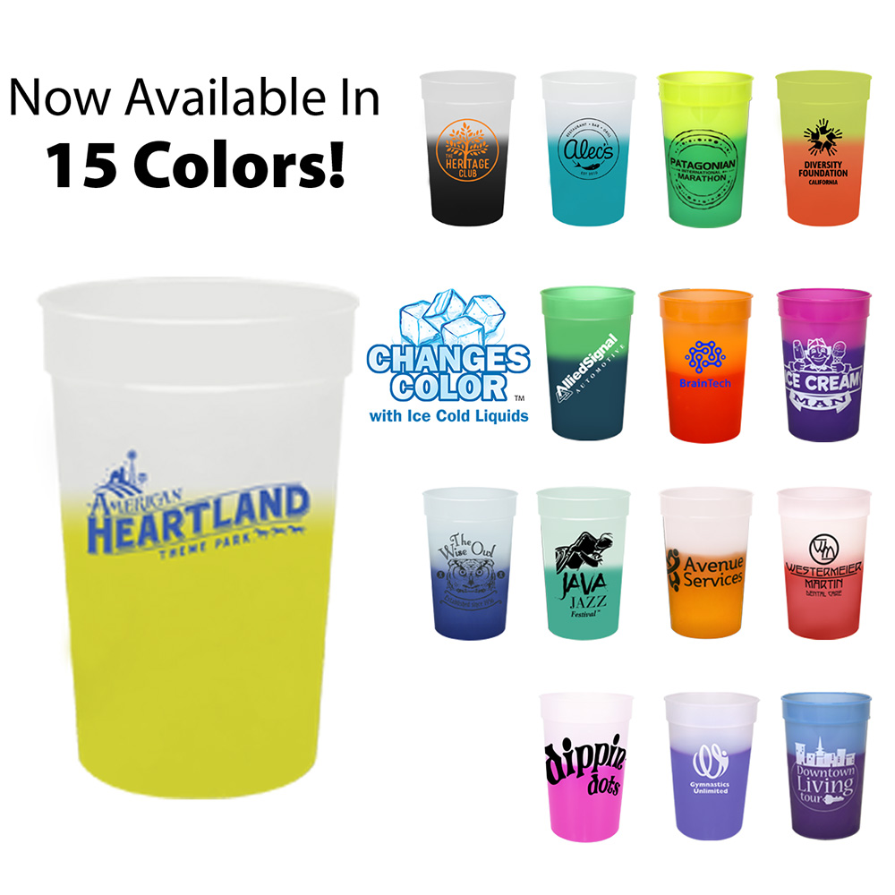 Changes color with ice cold liquids. Price includes one color, one location imprint.