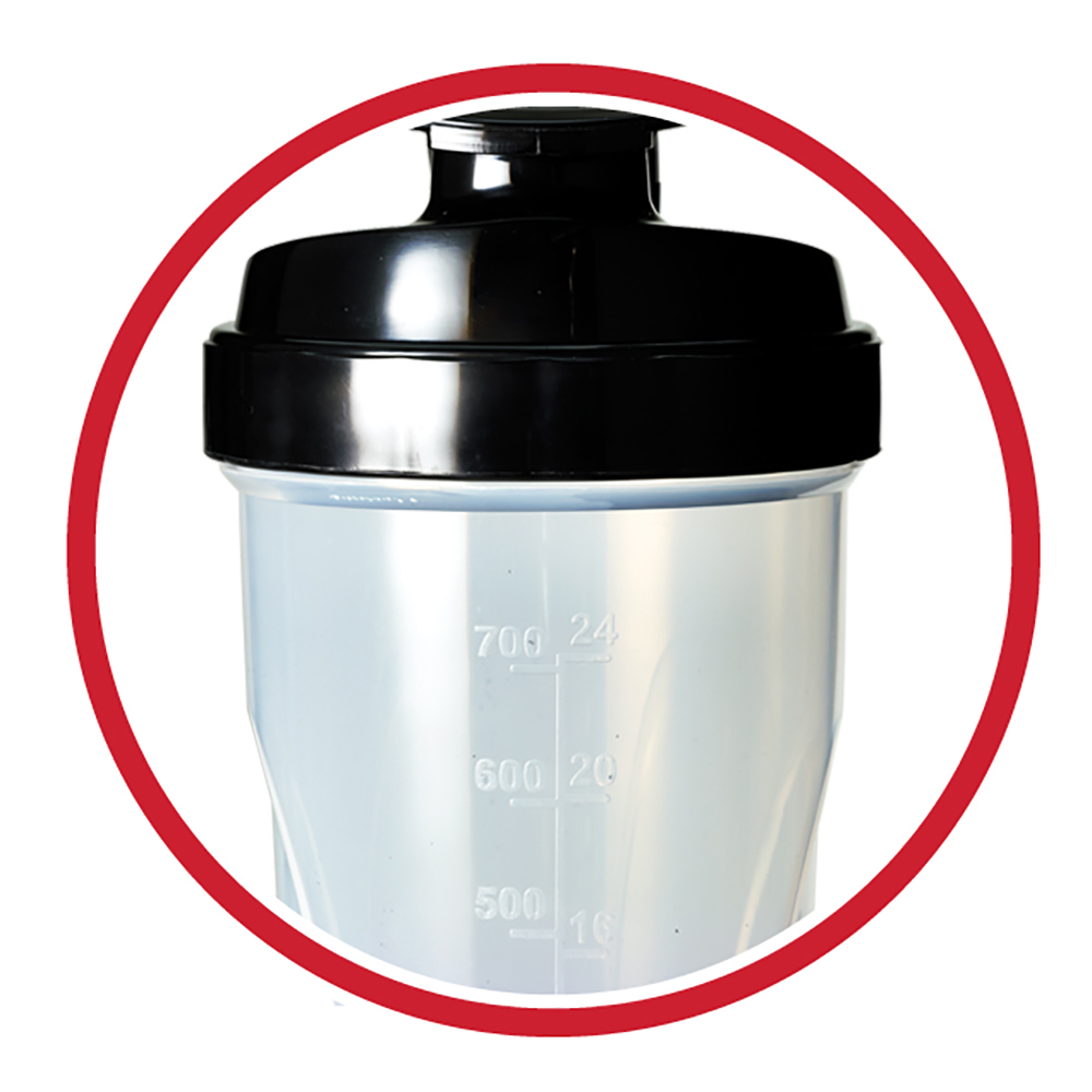 24 oz. (700 ml) BPA-free bottle. Features a specially designed Vortex ball to break up powders. Includes an easy to swivel flip-top lid. Fits most auto cup holders. Ships assembled. Top rack dishwasher safe. BPA Free.
