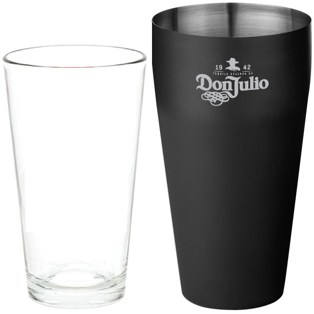 Boston Cocktail Shaker with 26 oz. stainless steel base and 16 oz. pint glass. Glass cup sits and creates a seal inside the shaker base for crafting your favorite Manhattan or Mojito. Hand wash only. Price includes laser engraving.
