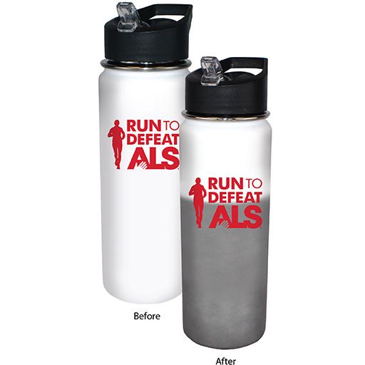Changes color with ice cold liquids. Flip straw lid. Easy fill wide mouth opening. Single wall stainless steel. Hand wash only. Price includes one color, one location imprint.