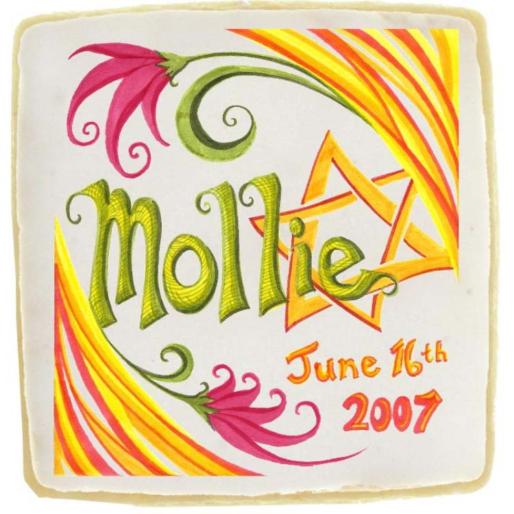 Every cookie is hand cut, hand frosted and precisely printed with your personalized art. The only limit is your imagination! All natural homemade recipes come right from Mom's kitchen. No sugar papers therefore the purity of the original cookie taste is maintained. Our cookies taste as good as they look. Shelf Life: 4 Weeks. Cookeis are individually wrapped. Price includes Full Color Imprint.