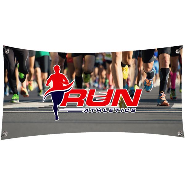 13 Oz Premium Glossy Vinyl. Includes Hems & Grommets For All Four Corners. Price includes full color imprint.