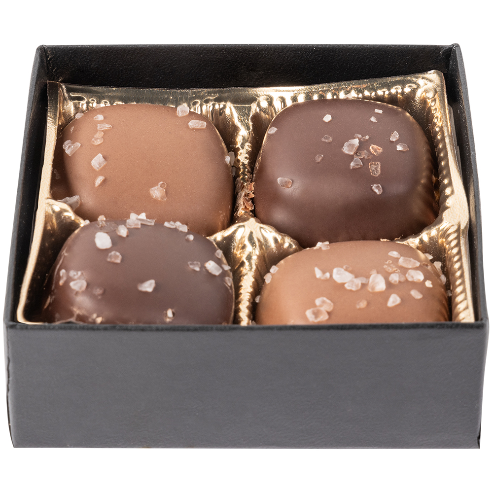 A great gift for any time of the year, this sea salt caramel box is the perfect balance of sweet and salty that your customers will love snacking on. A combination of our mouthwatering milk and dark sea salt caramels are elegantly packed in a gift box. Measuring 3 1/4"W x 3 1/4"H x 1 1/4"D, this box of caramels is a great way to promote awareness of your brand. Circle K Certified. Price includes one color, one location imprint. Circle K Certified.