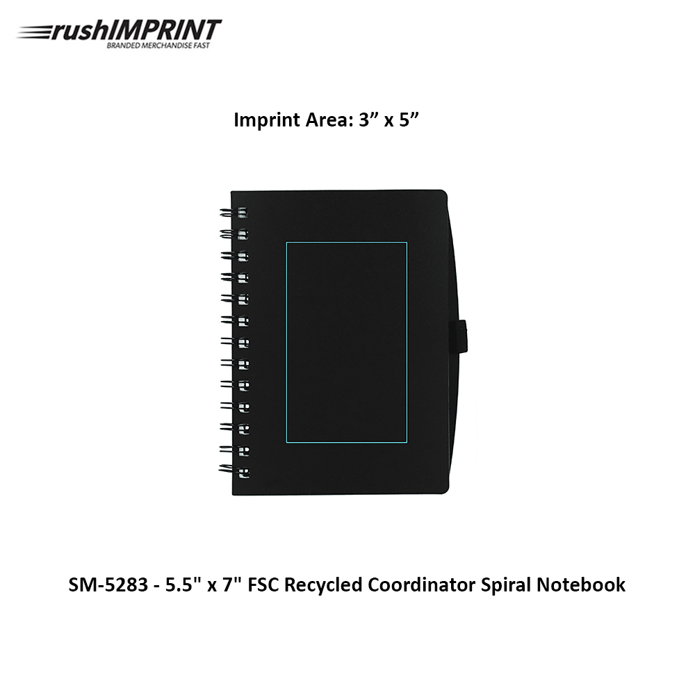 5.5" x 7" FSC Recycled Coordinator Spiral Notebook Price includes one color, one location imprint.