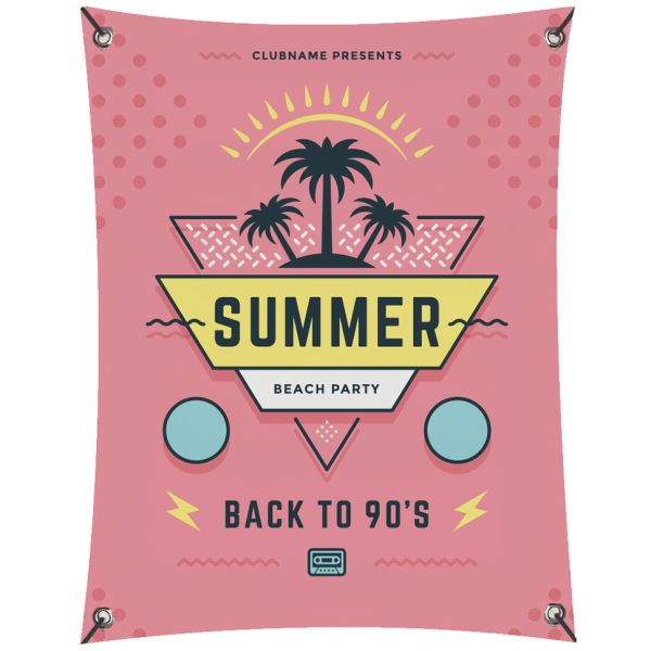 13 Oz Premium Glossy Vinyl. Includes Hems & Grommets For All Four Corners. Price includes full color imprint.
