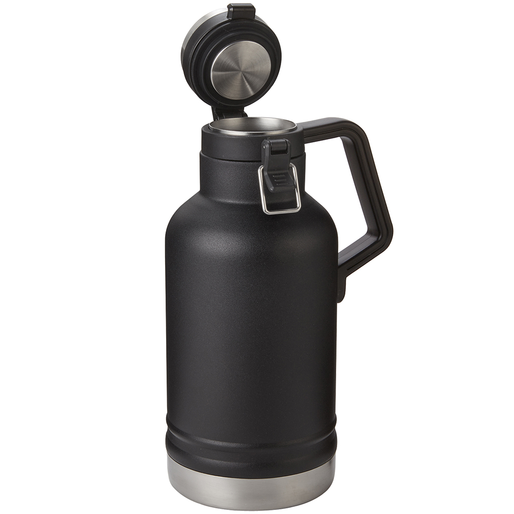 Stainless Steel Outer & Inner walls. Copper-lined. Double-wall vacuum insulated. Keeps beer cold for 18 hours. Features an easy to open wide mouth clasp lid. Sturdy easy-to-grip handle. BPA-Free. Sweat-resistant. Ships assembled. Hand wash recommended. Price includes one color, one location imprint.