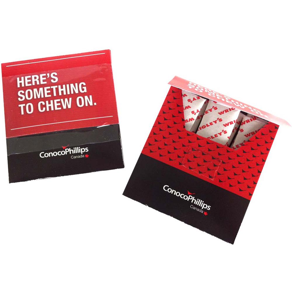 6 Piece Stick Gum Pack. Create a retail look with our full color gum packs. Say everything you need to say about your company or promotion using the front and back imprint areas. Have fun with your artwork and create a visual piece that gives them something to chew on. Price includes full color imprint.