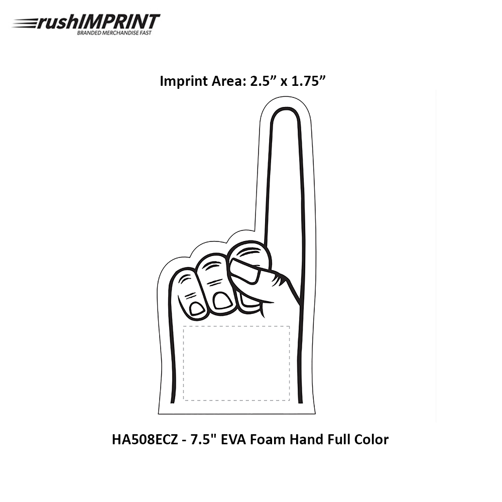 Catalog Year 2025. FOB: Maine 04619. Price includes full color imprint on one side. 2nd side print with additional charges. See Product Options. Give your promotional campaign a little understated fun and games with this foam "#1" hand! It has a two-finger slot for hand use, and is made from EVA foam for a more detailed print than conventional foam hand. It's great as a mailer and for a bottle topper with a full color one side print included. Price includes full color imprint.