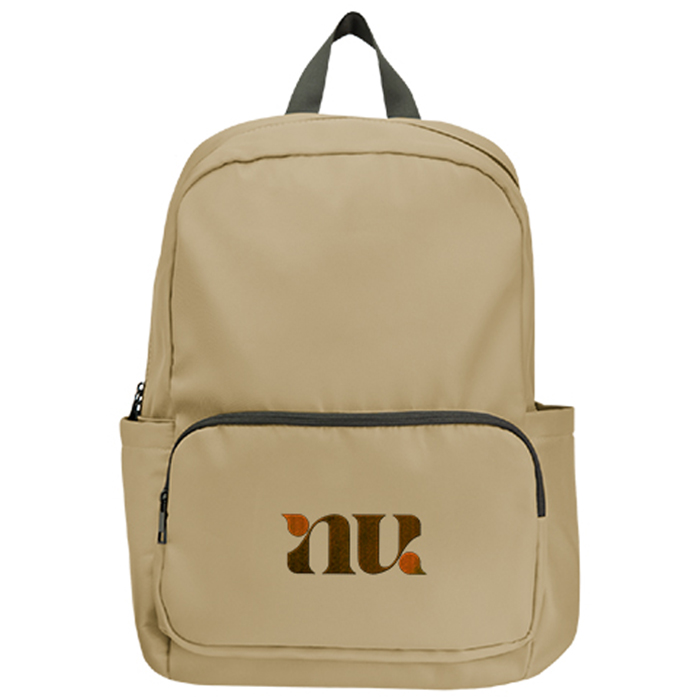Made of Combo: 100% rPET 230D Twill/rPET 190T Lining, Polyester Knitted Fabric Backing. Made From Post Consumer Recycled Materials. Recycled Polyester (rPET) Is Obtained By Melting Down Existing Plastic Bottles And Other Material Sources To Create New Polyester Fiber. Zipper, Handle, Inner Binding, Buckle and Padding Are Not rPET. Zippered Main Compartment. Adjustable Shoulder Straps And Web Carrying Handle. Front Zippered Pocket. Two Side Slip Pockets. Trolley Strap. Accommodates Most Laptops Up To 13". Zinc Alloy Zippers. Polyester Webbing Zipper Pulls. Spot Clean/Air Dry. Price includes embroidery.