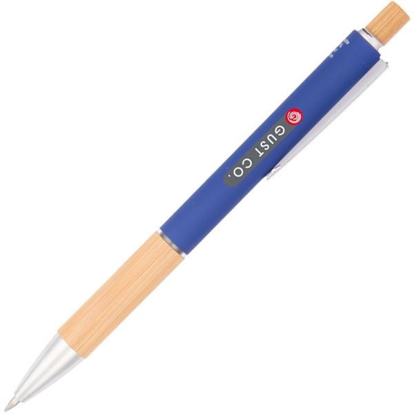 The Bamboo and Recycled Aluminum Soft Touch Ballpoint is a sustainable writing instrument with a 94% recycled aluminum barrel, FSC bamboo grip and clicker with sleek chrome accents. Aluminum barrel has a soft touch coating for ultimate comfort while writing. Features a precise 0.5mm writing tip which delivers smooth blue gel ink and 150-meters of writing length. By choosing this pen, you're making a positive impact on the environment, as one percent of sales are donated to environmental nonprofits through a partnership with 1% For The Planet. 94% recycled aluminum barrel, FSC-certified bamboo grip and clicker with sleek chrome accents. Aluminum barrel has a soft touch coating for ultimate comfort while writing. 0.5mm writing tip delivers smooth blue gel ink. 150-meters of writing length. Price includes one color, one location imprint.