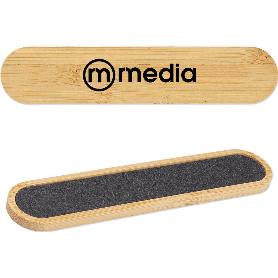 Keep your fingernails looking good with this nail file made from eco-friendly bamboo. Excellent promotional item to add the custom logo of salons and spas! One location imprint only. Renewable Resource. Reusable. Sustainable Promotional Product. Material: Wood. Price includes one colour, one location imprint.