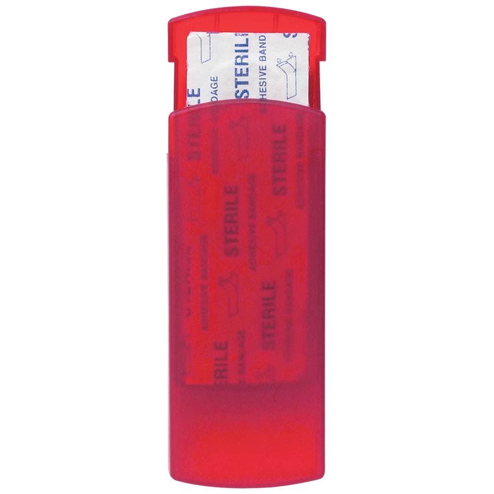 Promote better first aid with these mini bandages. Plastic case contains 5 bandages. Top slides open to access bandages. Great for hospitals, nursing homes, drug stores etc.