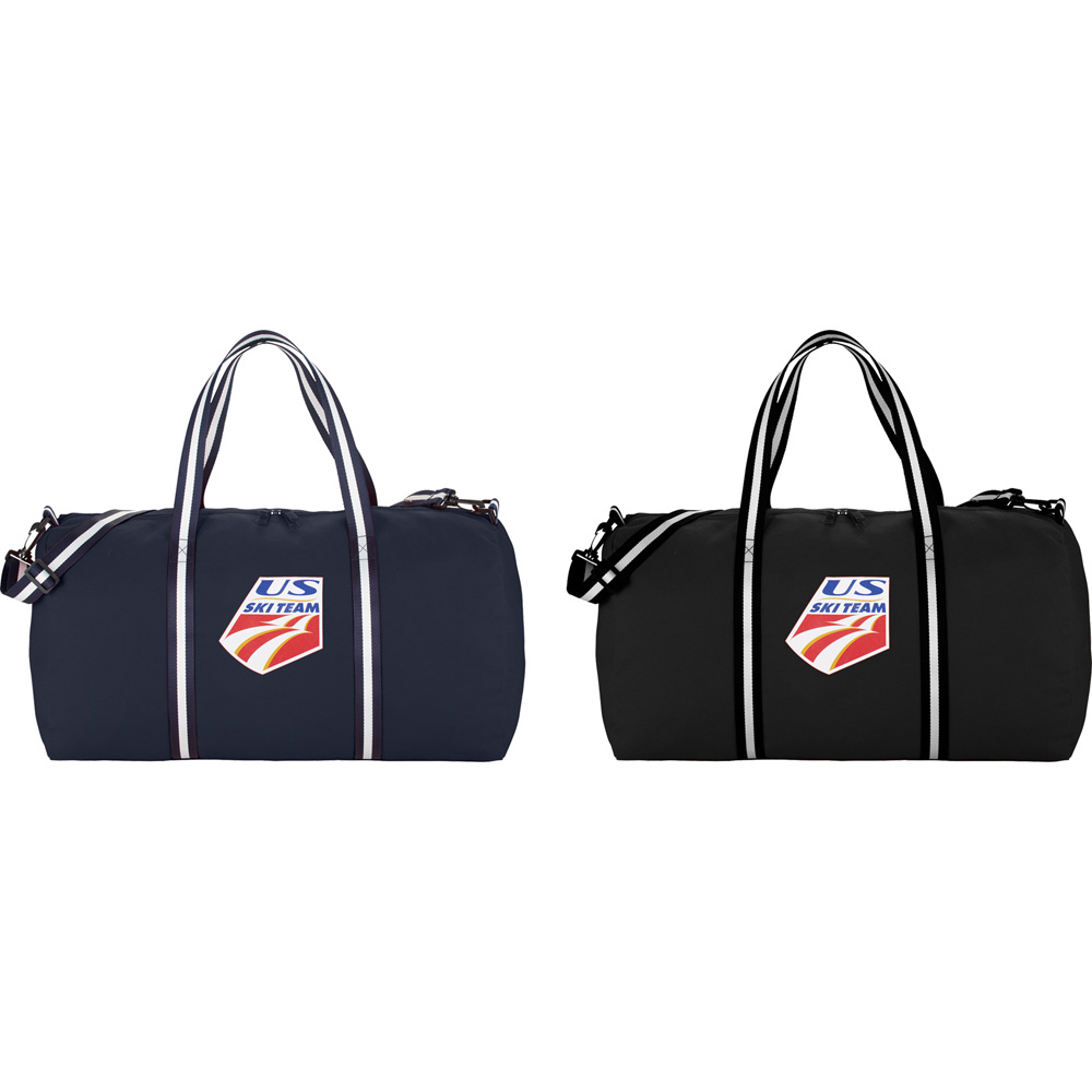 This iconic cotton weekender style is the perfect travel bag for your next adventure. Contrast stripe cotton webbing gives this classic a fresh look. Large zippered main compartment will hold all your clothes and gear. Detachable, adjustable striped cotton shoulder strap.
