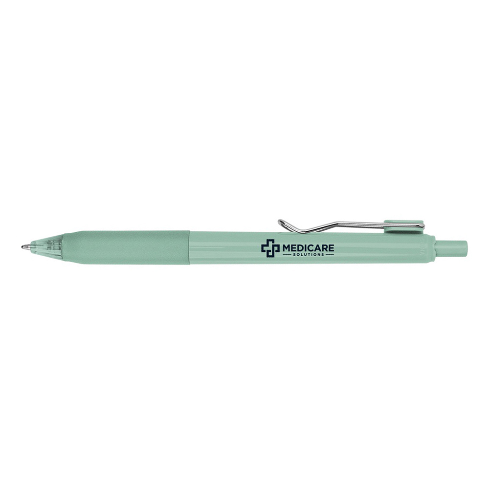 Plunger Action. Made Of rABS. Recycled ABS (Acrylonitrile Butadiene Styrene) Is Obtained By Melting Down Post Consumer ABS Plastic To Create New ABS Plastic. Unique Clip Design. Rubber Grip For Writing Comfort And Control. Price includes one color, one location imprint.