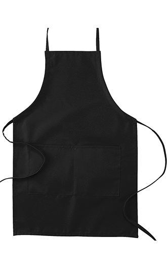 Fabric: 65% polyester, 35% cotton twill. Feature: 30" length, 20" width. two 7" wide front pouch pockets. adjustable ties. Natural is 100% cotton canvas. Price includes one color, one location imprint.