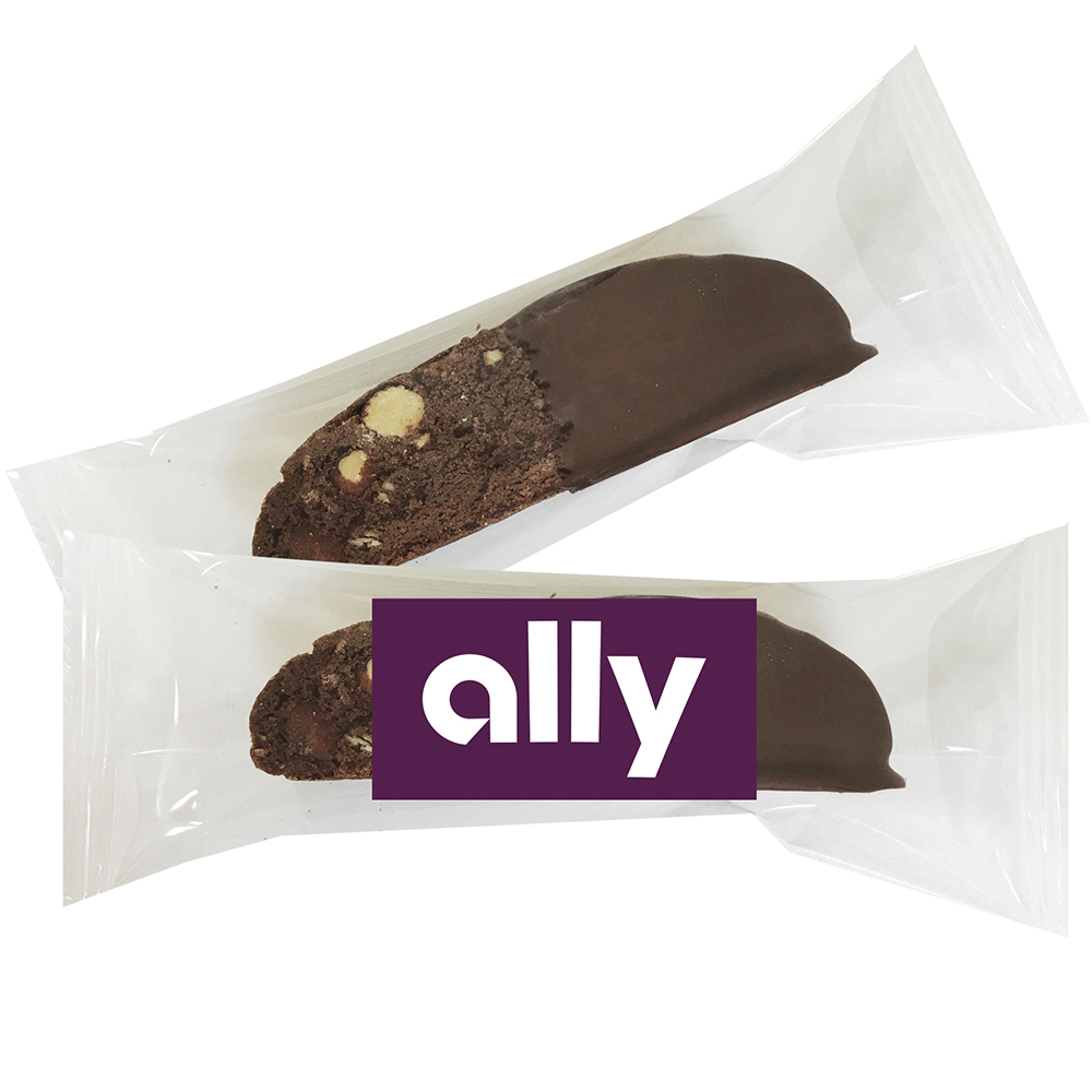 BISC-CAD Chocolate Almond - Chocolate Dipped Biscotti. Price includes full color imprint.