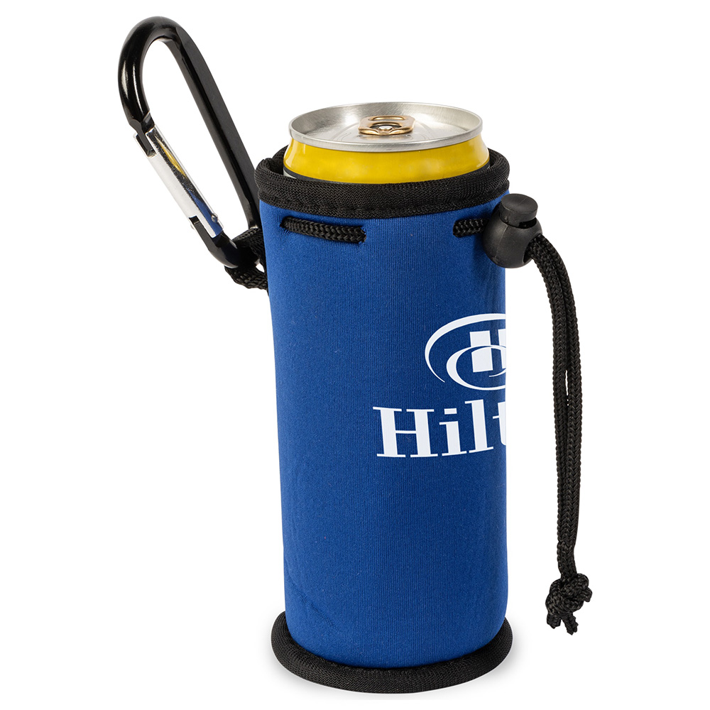 Collapsible bottle cooler with carabiner clip. Made of polyester and polyvinyl. Water Bottle available separately as BW100 or BW200 Bulk Packed. Price includes one color, one location imprint.