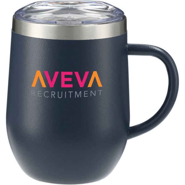 Durable, double-wall stainless steel vacuum construction with copper insulation, which allows your beverage to stay cold for 24 hours and hot for at least 6 hours. Features the durable stainless steel handle design. The construction also prevents condensation on the outside of the piece. On-trend, durable powder coating. 12oz. Material: 18/8 GradeStainlessSteel.