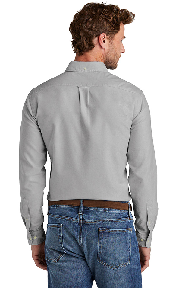 Originally invented in 1900, this iconic silhouette embodies the off-duty professional look whether you dress it up or keep it casual. 5-ounce, 100% cotton oxford. Garment-washed. Button-down collar. Button at center back collar. Box pleat and locker loop at back yoke. Pearlized buttons with Brooks Brothers logo. Left chest pocket. Gussets at side seam. Rounded, adjustable cuffs. Price includes embroidery.