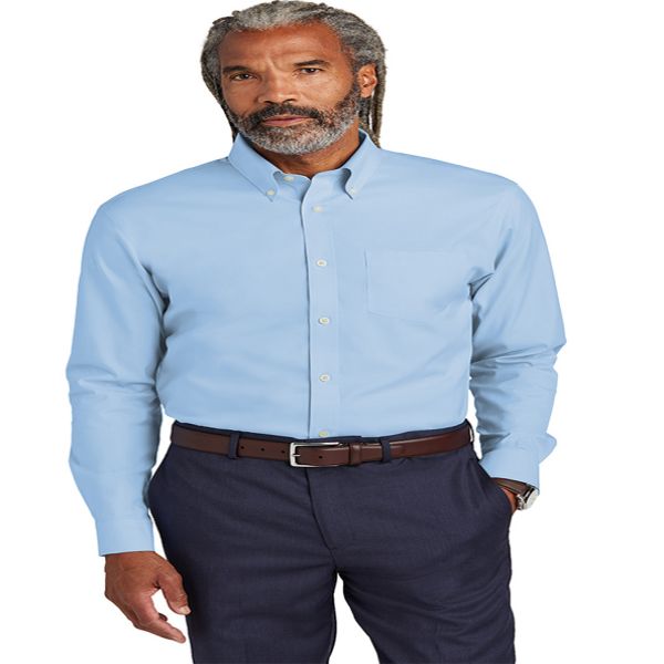 This iconic dress shirt combines a little bit of stretch with a higher back yoke for a classic fit. A premium wrinkle-free treatment process means effortless style and a sharp, professional finish all day long. 4.4-ounce, 97/3 cotton/spandex fine yarn count. Taped seams. Button-down collar. Left chest pocket. Pearlized buttons. Rounded, single-button cuffs. Price includes embroidery.