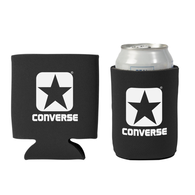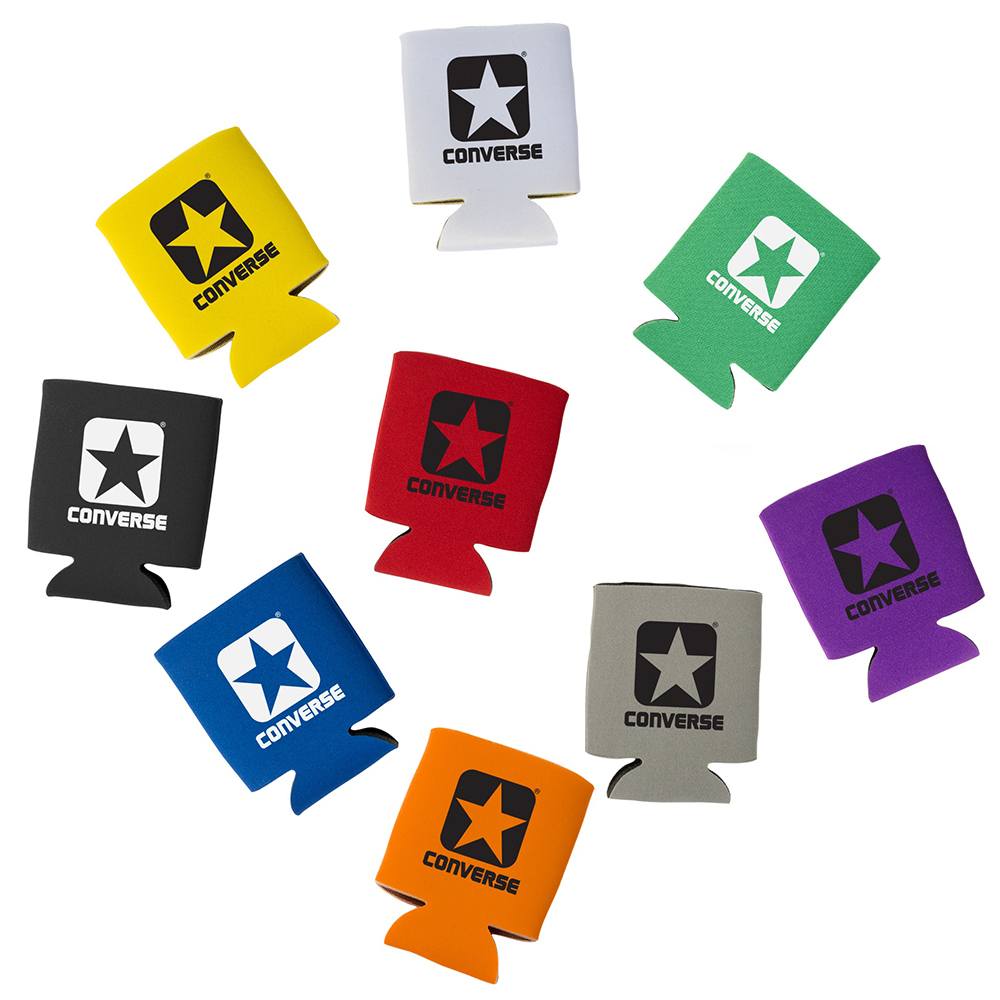 Collapsible can cooler. Made of faux neoprene. Bulk Packed. Price includes one color, one location imprint.