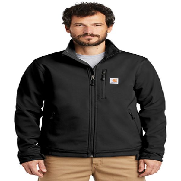 The closest thing to wearing an armadillo, this heavyweight soft shell keeps the elements at bay while keeping you warm and dry. 13.9-ounce, 90/10 nylon/spandex shell bonded to a water-resistant film insert and a 100% polyester fleece backing. Rain Defender durable water repellent. Wind Fighter technology tames wind. Rugged Flex technology for ease of movement. Reverse coil center-front zipper with chin guard. Zip-through cadet collar. Left chest pocket with reverse coil zipper. Zippered hand pockets. Interior pockets: large document pocket with hook and loop closure and two open pockets. Hook and loop adjustable cuffs. Adjustable drawcord drop tail hem. Carhartt-strong, triple-stitched main seams. Carhartt label sewn on chest pocket. Your price includes embroidery on the left chest.