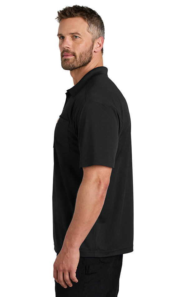 Sweat and snags are no match for this rugged polo. Built from quick-drying, snag-resistant fabric, you'll stay comfortable and look professional 24/7 on and off the jobsite.. 5.2-ounce,100% polyester snag-resistant jersey. Carhartt Force technology wicks sweat, dries fast and fights odors. FastDry technology keeps you cool for all-day comfort. Odor-fighting. UPF 40. Non-roll rib knit collar. Tagless neck label. Three-button placket with dyed-to-match buttons. Utility loop at placket end. Open hem sleeves to increase range of motion. Carhartt label sewn on left chest pocket. Relaxed fit. Price includes embroidery.