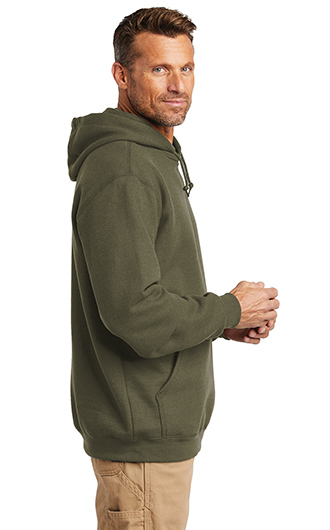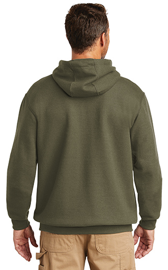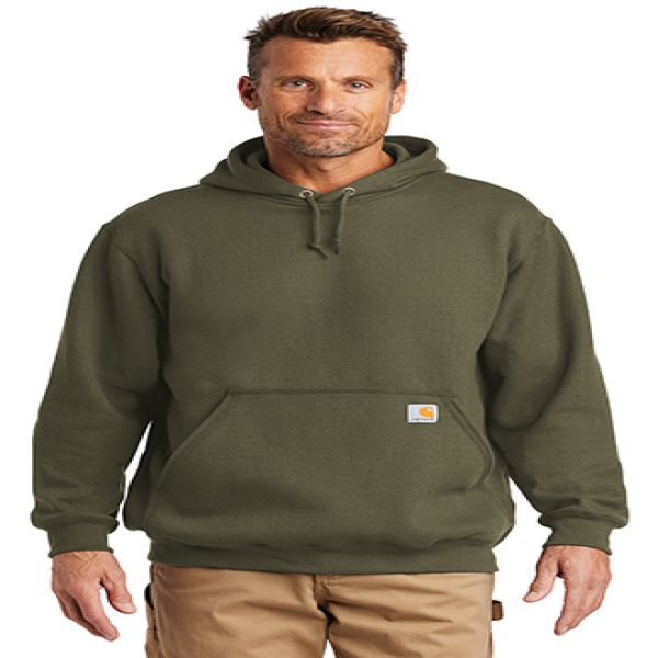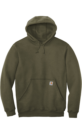 Sometimes Mother Nature can’t make up her mind. This sweatshirt works perfectly as a layer or by itself, allowing you to adapt with the weather. 10.5-ounce, 50/50 cotton/poly blend. 70/30 cotton/poly blend (Heather Grey). Attached three-piece hood with drawcord closure. Front hand warmer pocket. Stretchable, spandex-reinforced, rib knit cuffs and waistband. Carhartt-strong, triple-stitched main seams. Carhartt label sewn on hand warmer pocket. Original fit. Price includes a one color imprint on left chest.