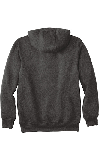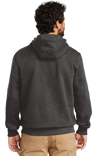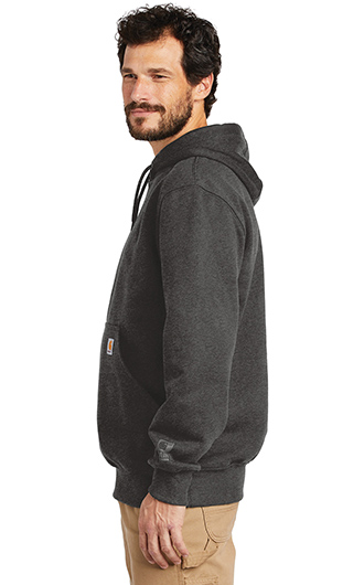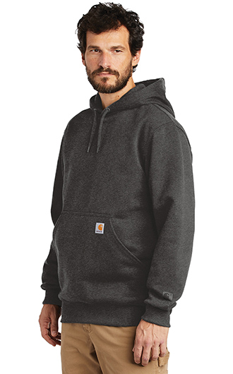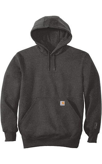 A heavyweight version of the classic hooded sweatshirt, this heavy-duty hoodie stands up to outdoor work in a substantial, water-repellent cotton blend. 13-ounce, 75/25 cotton/poly blend with Rain Defender durable water-repellent finish. 55/45 cotton/poly blend (Carbon Heather). Attached jersey-lined three-piece hood with drawcord closure. Front hand warmer pocket with hidden security pocket inside. Stretchable, spandex-reinforced, rib knit cuffs and waistband. Carhartt label sewn on hand warmer pocket. Original fit. Price includes a one color imprint on left chest.