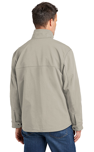 This soft shell jacket combines iconic Carhartt looks with unbeatable weather protection. The nylon is 35% lighter than traditional duck but with twice the abrasion resistance. 8.1-ounce, 97/3 nylon/elastane. 100% polyester stretch taffeta lining. Rain Defender durable water repellent. Wind Fighter technology tames wind. Rugged Flex technology for ease of movement. Reverse coil center front zipper with kissing welt. Zip-through cadet collar. Secure interior pockets. Two lower front pockets. Adjustable cuffs. Drop tail hem for added coverage. Carhartt-strong, triple-stitched main seams. Carhartt label sewn on left pocket. Price includes embroidery.