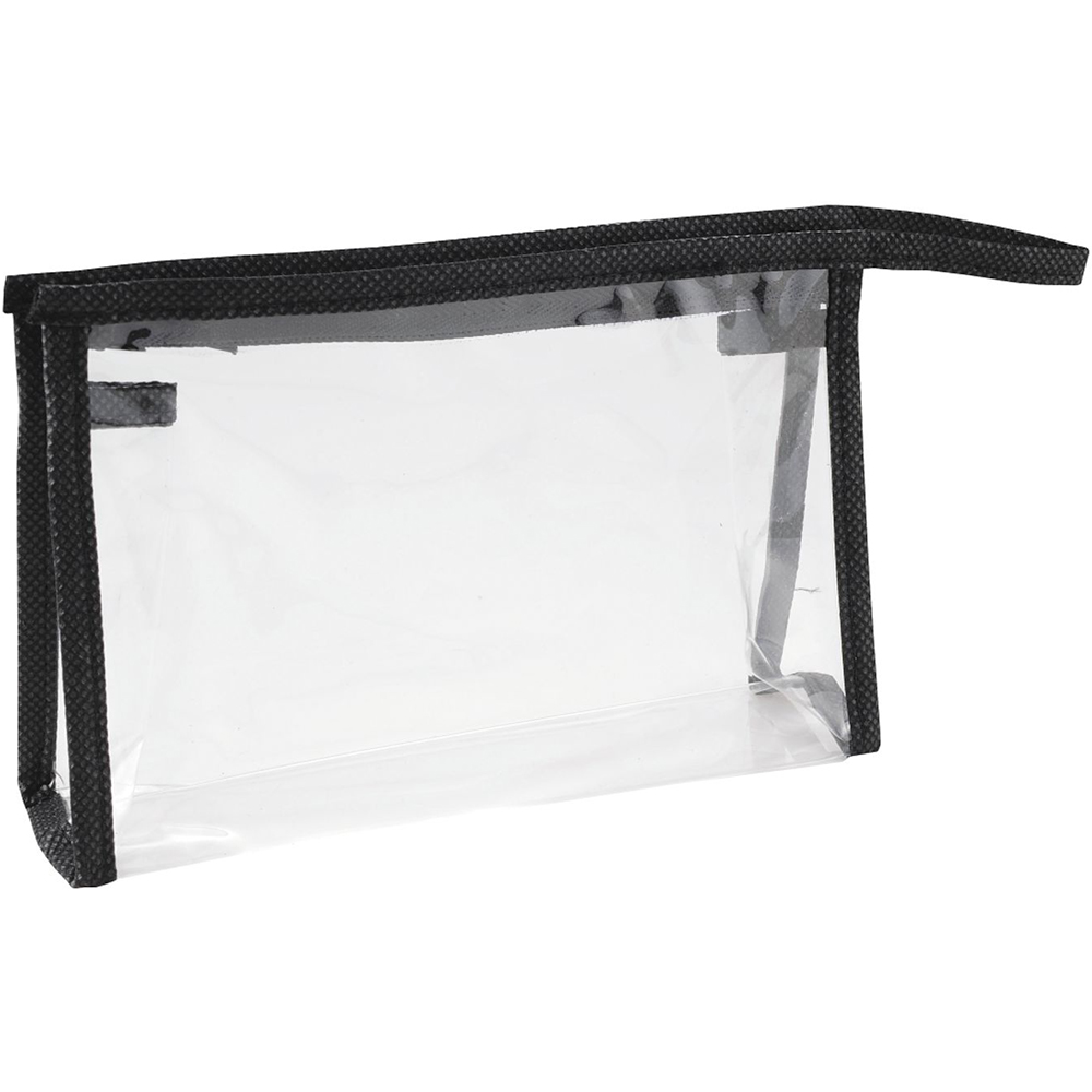 The Claro Travel Bag is the perfect size to hold toiletries or other small essentials. The clear plastic design makes finding contents easy in the zippered main compartment. The zippered closure secures items for transport in a backpack, purse, suitcase or other carrier. The fashionable trim is available in a variety of colors. Material: PVC. Convenient travel size. Zippered main compartment. Fashionable accent stripe.