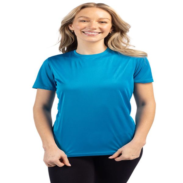 The Clique Spin Eco Performance Jersey Short Sleeve Womens Tee is your essential every day tee shirt for practice, workouts, supporting your favorite team, and for representing your school, college, team or company. Our super durable, super comfortable tee is constructed from spin-dyed 100% Polyester jersey for great style, performance, and consistent color making for a great base for embroidery or heat transfer printing, and a lower environmental impact. Our durable and comfortable Spin Eco Performance Series is made with spin dye technology for long lasting color that never fades or loses its color. The spin-dye production process uses 90% less water, fewer chemicals, and reduced energy consumption than traditionally dyed fabrics. This item also features removable tags for comfort and relabeling. Clique apparel features no exterior branding so you can always count on Clique as a great uniform, spirit wear, and as your everyday sporty essentials. 100% Spin dye polyester interlock. UPF 50+ UV Sun Protection. Self-fabric neck trim. Open sleeves. 3.81 oz per unit. Price includes one color, one location imprint.