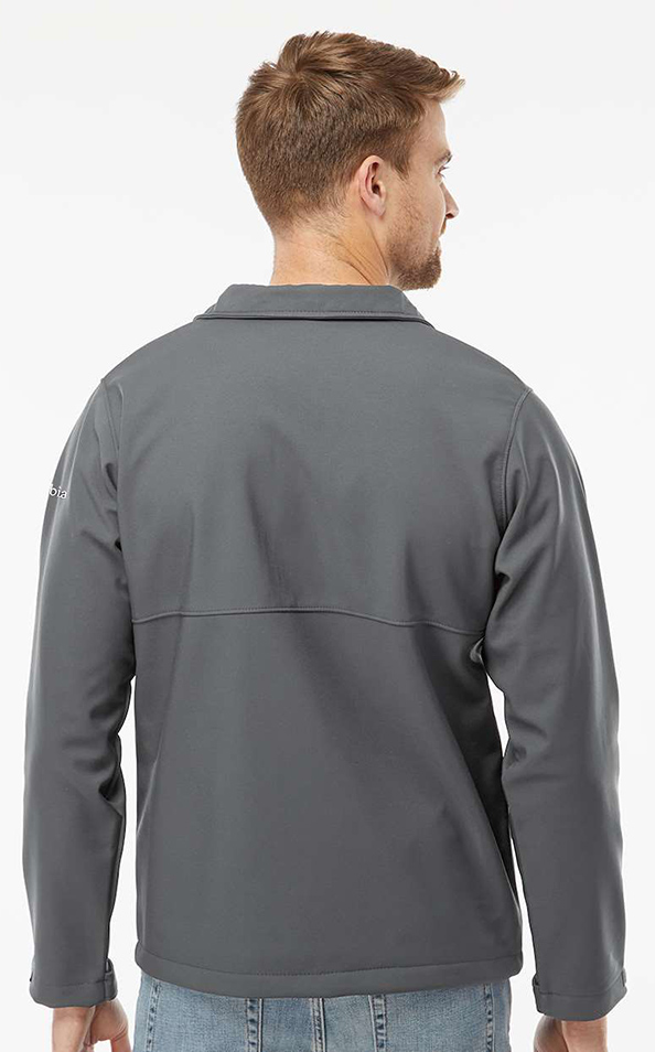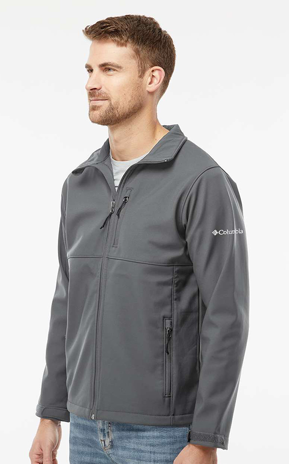 100% polyester, Nexgen Contour soft shell. Omni-SHIELD advanced repellency. Comfort stretch. Water-and wind-resistant. Bonded soft shell. Abrasion resistant chin guard. Zippered chest and hand pockets. Adjustable sleeve cuffs. Drawcord adjustable hem. Columbia logo embroidered on left sleeve. Price includes embroidery.