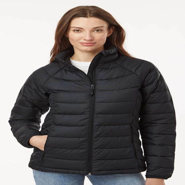 100% polyester. 100% recycled polyester Thermarator insulation. Omni-HEAT thermal reflective. Omni-SHIELD advanced repellency. Chin guard. Interior security pocket. Zippered hand pockets. Binding at cuffs. Drawcord adjustable hem. Columbia logo screen-printed on left sleeve. Price includes embroidery.