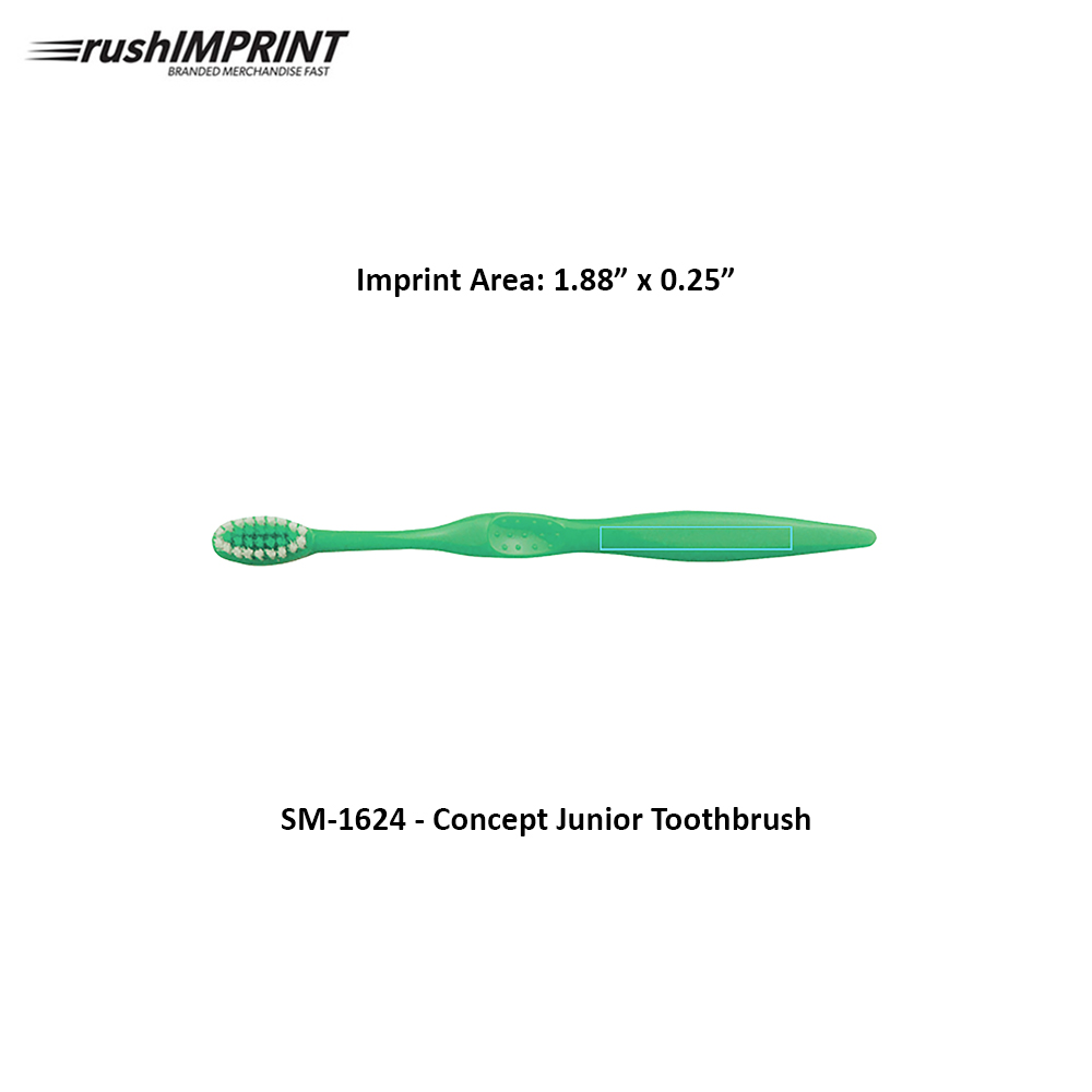 The Concept Junior Toothbrush by HumphreyLine is a high-quality, teen/junior-size toothbrush with soft bristles and matching inner bristles and body colors and is Made in the USA. Optional matching toothbrush travel caps available at $0.20(G) and are packed separately. Meets FDA requirements and is only available for shipment within United States (including Alaska, Hawaii & Puerto Rico). Less than minimum orders not available. FOB ZIP: WI, 54703. Material: Plastic. Price includes one color, one location imprint.